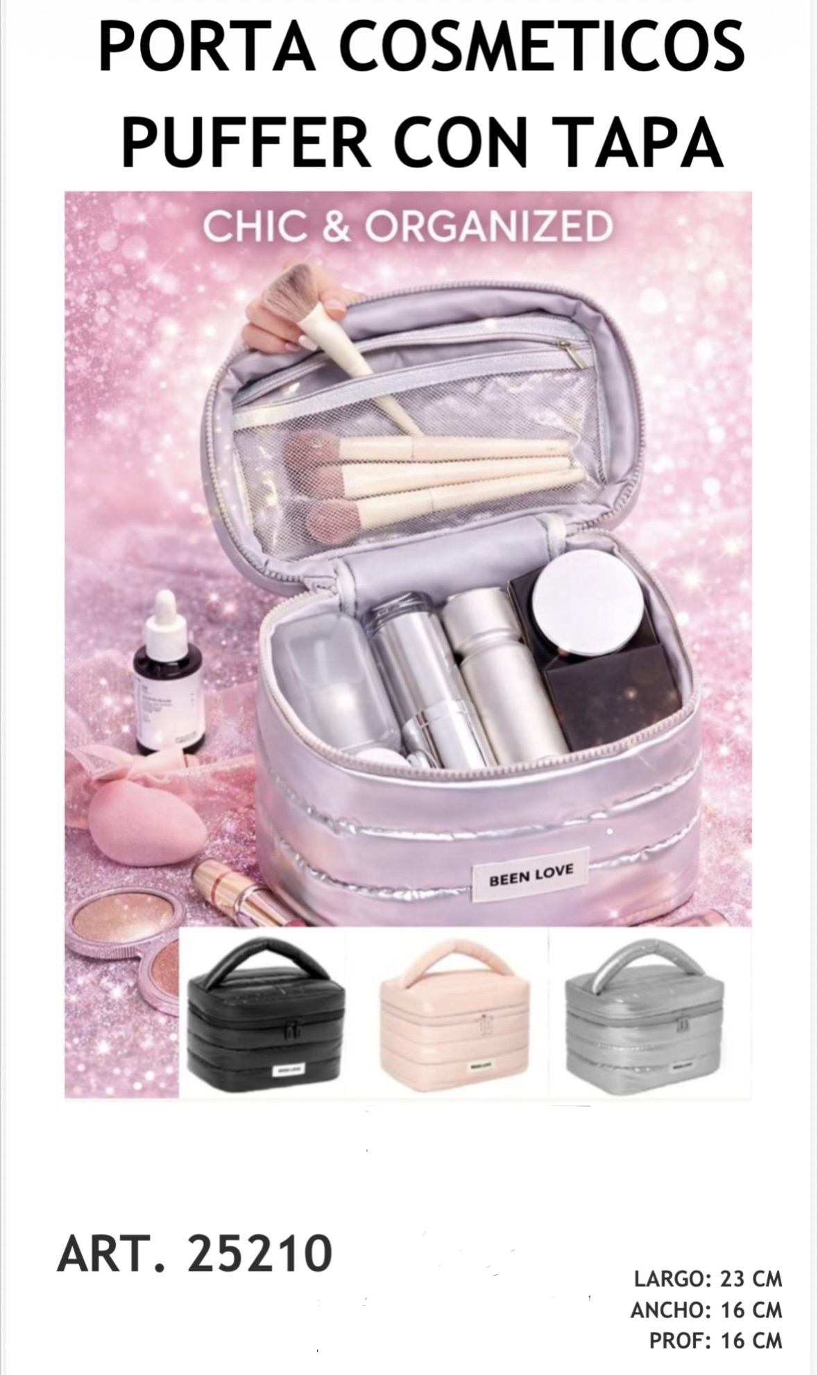 PORTACOSMÉTICO PUFFER CON TAPA NAU-SOLO NEGRO EN STOCK