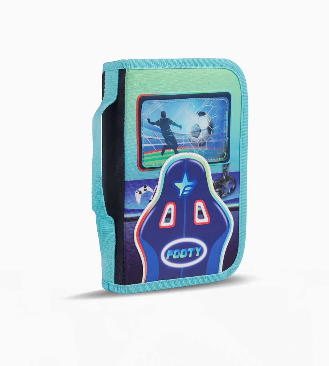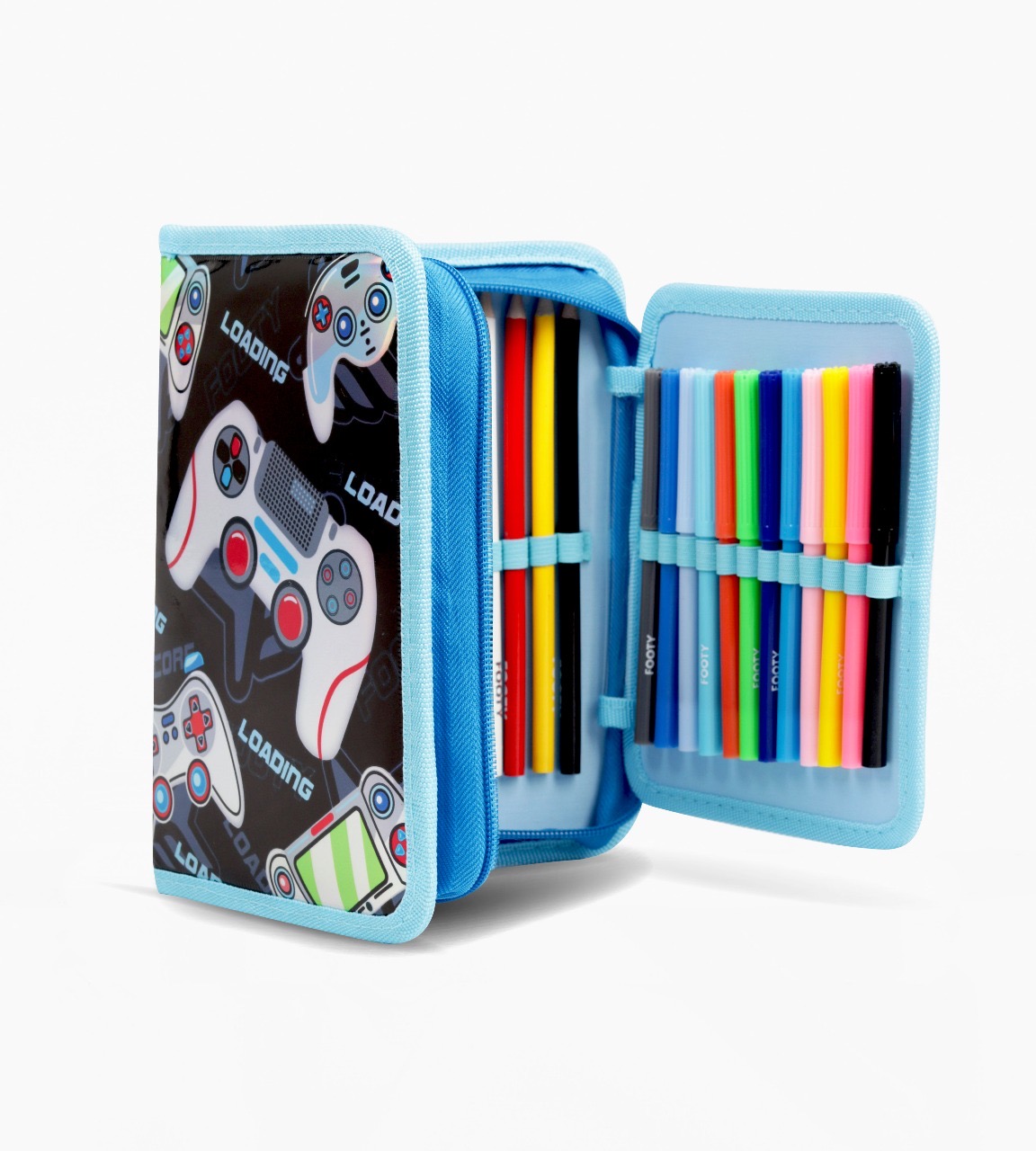 CARTUCHERA FOOTY CELESTE CON ÚTILES