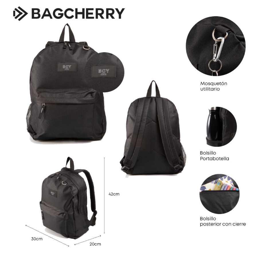 MOCHILA BAGCHERRY-SOLO COLOR NEGRA